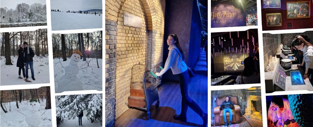 ♥ A február ezek utána már szinte elröpült. Sopronban még meglepett minket egy váratlan hatalmas hóesés – tényleg akkora káosz volt, mint a hírekben… És eljutottunk a Harry Potter kiállításra is Szentendrére! Hogy én ezt mennyire vártam! 😀 Nagyon interaktív és látványos, bár maradt bennünk egy kis megmagyarázhatatlan hiányérzet, de ettől függetlenül nagyon boldog vagyok, hogy ott voltunk, gyűjthettük a pontokat a választott házunknak a megoldott feladatokkal, és megcsodálhattuk a filmekből kiállított híres jelmezeket és tárgyakat.